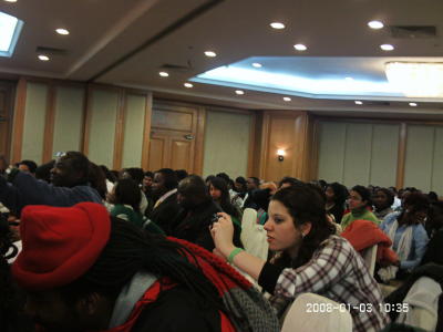 Wieder zurück zum Abend: Eine Stunde, nachdem im Konzertsaal (übrigens ohne Zugabe) der letzte Ton verklungen ist, bin ich (mit einem Abstecher zum Wanda-Kinocenter, wo der neue NARNIA-Film aber erst nächste Woche startet) auf dem Weg zur internationalen Gemeinde, wo ich während der musikalischen Gebets-"Watch Night" auch dieses Jahr vergeblich hoffe, irgendwie würde diesmal etwas dazwischen kommen und das Jahr doch nicht pünktlich um Mitternacht rum sein. Nach 0 Uhr hält es dann die Afrikaner nicht mehr auf den Sitzen und sie zetteln eine Art Gospel-Polonäse an! Wildfremde Menschen wünschen mir ein gutes neues Jahr. Und wenn ich Ingrid aus Lübeck nicht demonstrativ die Hand hingehalten hätte, hätte ich schon wieder eine Umarmung einstecken müssen!