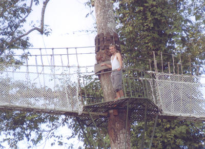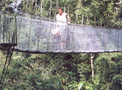 Das ist nun unzweifelhaft der Höhepunkt meiner Reise: Ich befinde mich zwischen Himmel und Erde. Ich wandle auf einer endlos scheinenden Reihe wackliger Brücken durch den Regenwald. Und dann gebe ich auch noch sechs Mark für Fotos aus, die man heimlich von mir gemacht hat. Wie konnte es so weit kommen?