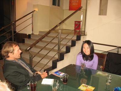 Leider ist Cathy immer nur mittelmäßig gelaunt, wenn sie in schwierige Geschichten gerät ("I cannot say no to a man!"), deswegen muss ich heute im Sprachtraining wieder ganz schön einstecken, ehe ich mich dann bei meiner Deutsch-Lektion revanchiere. Anschließend schleppt sie mich in ein Restaurant mit, wo sie sich mit einer Freundin verabredet hat, die sie irgendwie anstrengend findet; ich fungiere als Puffer. Die Freundin, die einen tschechischen Freund namens Martin Draga hat, der zur Zeit nicht da ist, erweist sich dann doch als recht patent und findet mich "cute", was sie so oft wiederholt, dass ich es auch garantiert nicht für einen Ausrutscher halte. Fanden meine Studenten auch mal, erwidere ich, bis sie Noten von mir bekamen...
