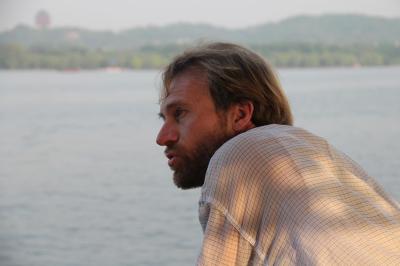 Ein malerischer Blick auf den endlosen See vor mir, auf dem der Fischer und seine Frau im Sonnenuntergang in ihrer kleinen Barke über das Wasser gleiten, entschädigt mich für die feuchte Landung auf diesem irgendwie nach Privatgrundstück aussehenden, menschenleeren Gelände, das hervorragend gepflegt ist. Ein Geistersanatorium? In der Mitte gibt es einen Fischteich samt Pavillon und kleinen Brücken. Schließlich begegne ich doch ein paar Leuten, als ich die Uferpromenade entlangwandere. Hangaufwärts befindet sich ein großes, weißes Gebäude und ich erkenne: Das ist ein Erholungsheim für Parteikader der Provinz Jiangsu. Nur braucht von denen anscheinend derzeit keiner Erholung.