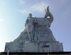 Die Verkäuferin am Eingang zum Park kann wie alle Einheimischen hier auf der Insel kein „sch“ sprechen, weshalb ich völlig verwirrt bin: „Zehn", also „shi“ hört sich bei ihr an wie „si“ („vier“), also höre ich „Vier-vier-fünf“ anstatt „vierundvierzig“. Willkommen bei den Ch’tis! Ich lege einfach einen Fünfziger hin. Wird schon stimmen. Stimmt aber nicht. Der Park ist reine Abzocke. Man hat zwar einen schönen Blick auf die Stadt, aber den hat man auf Erhebungen in Stadtnähe bekanntlich immer. Und das Monument ist auch jetzt nicht der Brüller. Ein Hirsch und zwei menschliche Gestalten illustrieren die Sage eines jungen Kriegers, der auf einen Hirsch angelegt hatte, der sich jedoch in diesem Moment, es war wohl eher eine Hirschkuh, in ein wunderschönes Mädchen verwandelte. Und wenn sie nicht gestorben sind... Außerdem gibt es noch einen buddhistischen Wunschbaum mit roten Schleifen und goldenen Schlössern und, dazu passend, einen Teich mit Goldfischen. Ich hätte lieber wie der Hirsch einen Blick zurück tun sollen und denselben Weg gehen, auf dem ich kam. Stattdessen verprasse ich völlig sinnlos und völlig gegen meine Gewohnheit 40 Yuan für eine Möchtgernachterbahn ins Tal, die aber auf halber Höhe endet, mich unschlüssig aussteigen und ins Verderben laufen lässt. Ich finde nämlich den Weg zurück nicht, drehe dann auch noch verzagt um und umrunde schließlich die gesamt Hügelkette. Ich lande in einer staubigen Endlosbaustelle, denn wir überall in China muss auch hier alles Alte und Traditionelle hässlichen Hochhauskomplexen weichen. Die Hitze und der Baulärm und der Krach vorbeipesender Mopeds treiben mich fast zum Wahnsinn. Ich komme dennoch in geistiger Gesundheit, wenn auch ziemlich erschöpft in meinem Hotelzimmer an, kann mir aber nur noch für sieben Yuan was zu essen kaufen, weil ich vergeblich hoffe, bei einer Barabhebung die immens hohen Gebühren sparen zu können. Die Banktanten weisen mich stur ab, obwohl ich mich extra begriffsstutzig gestellt habe. Ich kaufe mir eine Nudelsuppe für vier Yuan und Bananen für zwei. Morgen wird sich herausstellen, dass ich die 1 Prozent Gebühr auch bei Barabhebungen am Schalter entrichten muss und ich werde Banken als Verbrecher beschimpfen (auf Englisch) und es wird mir gar nichts nützen. Sicherlich wirke ich mit meiner Stuwwelpeter-Frisur auch eher kurios als furios. Tja, nur nicht den Kopf verlieren, das war schon das Motto des sagenumwobenen Hirsches.