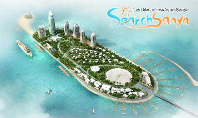 Sanya hat entschieden etwas mit Dubai gemeinsam. Dort wurde ja, direkt vor der Küste, diese künstliche Insel in Palmenform und mit lauter Mega-Hotels errichtet. Die Form einer Palme haben die Chinesen zwar nicht zu bieten, dafür ist ihre vier Quadratkilometer große Kunstinsel von echten, goldummäntelten Palmen umgeben. Das ganze Unternehmen nennt sich Phoenix Island, denn wie Phönix aus der Asche erheben sich hier aus dem blanken Meer monströse Bauten, die offensichtlich hoch hinaus wollen. Vier von sechs geplanten Apartment-Türmen stehen schon als Rohbau, Bauwerk Nummer fünf wird die Attraktion: Das Sieben-Sterne-Hotel wird die Form einer geschlossenen Muschel haben, aber in der Mitte, also zwischen den beiden Muschelhälften, weht der Wind durch. Der Wanderarbeiter aus der Provinz Sichuan, der seit vier Jahren an und auf der Insel arbeitet, schwärmt mir vor: Sanya habe immer gute Luft und schönes Wetter und die Aussicht hier auf der Insel sei doch großartig. Da stimme ich zu. Ich sitze, nachdem ich die palmenumsäumte Baustelle umrundet habe, im Schatten des Phönix-Monuments, das zugleich Gedenkstätte für den Empfang der olympischen Fackelläufer 2008 in Sanya ist, da gesellt sich der Arbeiter, ein sonnengegerbter Gärtner, zu mir. Vorher habe ich mir im bereits fertig gestellten Konferenzzentrum, indem ich mich dem Empfang für eine Gruppe chinesischer Touristen einfach angeschlossen (aber brav auf Getränke und Kuchen verzichtet) habe, eine 3-D-Simulation der fertigen Insel angesehen: ein Hubschauberlandeplatz, ein eigener Schiffsanleger, Swimming-pools, Bungalows für Reiche, Einkaufshütten, die aussehen wie Bungalows für Reiche...