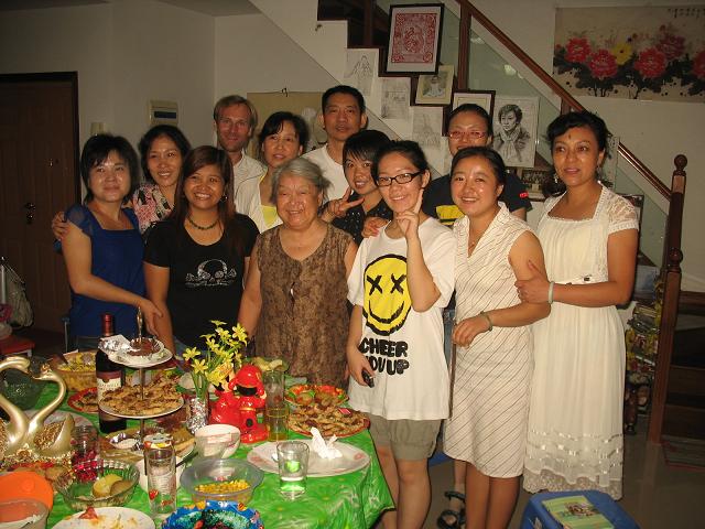 Gestern saßen wir noch im Salon des Fachbereichs, die Studenten des IKG-Studiengangs (Doppelmasterstudiengang Interkulturelle Germanistik in Kooperation der Universitäten Göttingen und Nanjing, paritätisch besetzt mit deutschen und chinesischen Studenten) und ihre Profs, um einer Reihe studentischer Magisterarbeitsthemenvorstellungen beizuwohnen, und die Lehrer schwitzten dabei in Anbetracht einer Außentemperatur von 18 Grad Celsius nicht minder als die Prüflinge. Das war die Arbeit; heute nun das Vergnügen: Damit die Studenten ihre Professoren mal näher kennen lernen können, gehen wir gemeinsam essen. Vize-Dekanin Kong hat sich dazu was ganz Besonderes ausgedacht: Ein Restaurant namens Grüne Küche. Dafür müssen wir (die Studenten holen mich am Südtor ab) zwar mit Bus Nr. 65 eine halbe Stunde fahren, aber der Laden, erste Adresse für tibetische Mönche, die diversen Reinheitsvorschriften Genüge zu tun haben, hat es in sich: Tausend Köstlichkeiten auf dem Büfett und alles ohne Eier, Fleisch und Milch. Potemkinsche Dörfer: Die Leckereien sehen z.T. aus wie Krabben oder Fleischspieße – ist aber alles vegetarisch bzw. vegetalisch! Sogar der Kuchen. Sogar die Seife auf dem Klo soll rein pflanzlich sein. Da geht man doch mal extra aufs Klo! Die deutsche Studentin neben mir, die gestern noch über die hochspekulative Raum-Theorie referiert hat, sitzt nun in diesem ganz konkreten Raum und folgt immer denselben Vektoren: hin zum Büfett, zurück zum Tisch. Bei mir ist es ähnlich: Vor der Speiseeistheke (hier wurde aber doch Milch verwendet) erscheine ich so lange, bis die Bedienung auf einmal spurlos verschwunden ist. Danach bin auch ich verschwunden, aber nicht spurlos. Heute ist nämlich letzter Öffnungstermin in der Bibliothek und alle wollen sich mit Ferienlektüren versehen lassen. Außerdem stehen, als ich ankomme, bereits zwei Studenten vor der Tür. Sie müssen sich ihre nicht akzeptable Abschlussarbeit abholen und eine zweite Fassung schreiben.
