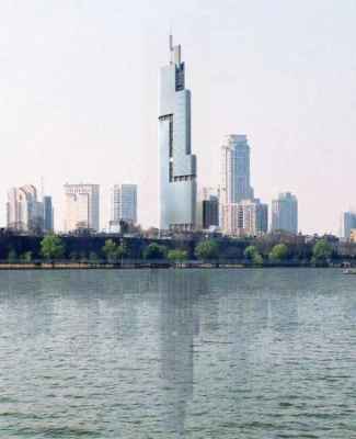 Übrigens: Der Zijin-Berg ist genauso hoch wie der jüngst fertig gestellte Zifeng-Turm, den man von hier aus gut sehen kann: 448 Meter.