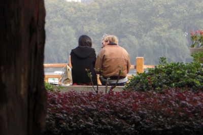 Der ältere Herr im Baum ist eigentlich die einzige nennenswerte Besonderheit am heutigen vierten Advent, aber dafür doch um so kurioser. Ich habe mich allein auf meinen Hausberg Zijin Shan begeben. Der Himmel ist heute strahlend blau. Auf dem Gipfel lungern wie immer allerhand Touristen herum und er, der Mann im Baum, hängt im Baum, mit den Kniegelenken in einen Ast eingehakt, Kopf nach unten. So hängt er da schon so lange, wie ich auf dem Gipfel raste, und liest Zeitung mit Hilfe von Steinen, die er auf die Seiten legt, damit der Wind sie nicht wegweht. Mir liegt es auf der Zunge zu fragen: „Warum hängen Sie im Baum?“, aber das kommt mir dann doch zu neugierig vor. Zumindest bestätigt sich der altbekannte Befund, dass die Jungen die Alten hier in China nicht mehr verstehen und umgekehrt.