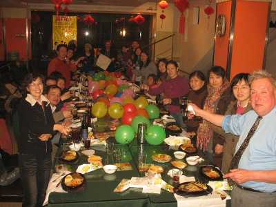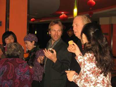 Es gibt die üblichen Stücke, klassische Gassenhauer, die die Chinesen so schätzen, Strauß, Donau, Radetzkymarsch und ein längeres modernes Stück mit Klavier, Geige und Gesang. Das gefällt uns am besten. In der Pause treffen wir meinen US-Kollegen Paul. Er hat auch eine Freikarte bekommen. Das Konzert gipfelt in einem Silvester-Konfettiregen in Gold! Danach brechen wir zusammen zu Michaels großer Silvesterparty am Konfuzius-Tempel auf. Es gibt kein Taxi. Wir nehmen Bus Nr. 1. Ich kenne den besser als sie. Sie kennt das Restaurant besser als ich. Ohne sie wäre ich irgendwo in der Nacht gestrandet, denn Michaels Mobiltelefon ist heute außer Dienst, wie ich feststellen muss, als ich ihn wegen unserer Verspätung anrufe. Als wir endlich eintreffen, fliegt Jiakun auf, weil sie sich gar nicht angemeldet hat. Noch schlimmer: Sie hat zwei ihrer Freundinnen eingeladen, die natürlich auch nicht angemeldet waren! Da hält sich Michaels Begeisterung spürbar in Grenzen, denn er hatte doch extra um persönliche Anmeldung gebeten, damit die Küche planen konnte. Jiakun wird den Rest des Jahres wegen dieser Peinlichkeit im Jammertal verbringen. Ich verordne ihr eine Grußkarte an Michael zum 1. Januar. Als Dankeschön für meine hilfreichen Tipps erhalte ich ein Neujahrsgeschenk: eine Tafel Lindt-Schokolade aus dem Wessi-Laden und einen Film aus Taiwan. Ich werde unisono aufgefordert ein Lied vorzusingen und wähle „Alle Jahre wieder“; da kann ich immerhin zwei Strophen auswendig und es ist auch nicht so hoch wie „O du fröhliche“ oder „Stille Nacht“. Beim Neujahrs-Countdown gibt es Chaos, weil die Uhr im Restaurant vor geht. Schließlich übernimmt Tom die Verantwortung für die richtige Zeit, aber seine Uhr hinkt hinterher.