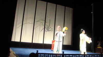 Heute schleppt mich Danyu, die Autorin, die alle sin-o-meter-Leser schon kennen, in eine Sondervorstellung mit drei Ausschnitten aus zwei Werken der legendären Kun-Oper (Kunqu). Die Kun-Oper ist noch älter als die Peking-Oper, sonst ist vieles gleich. Man hört also auch dieses scheppernde Klong-Klong und diese quietschenden Streichinstrumente. Die englischen Untertitel links und rechts gab es aber früher vermutlich noch nicht im Theater. Sie fallen hier und heute auch nach dem ersten Akt aus. Den Rest sieht man unten im Bild. Oder man liest mal nach durch einen Mausklick hier oder aufs Bild.